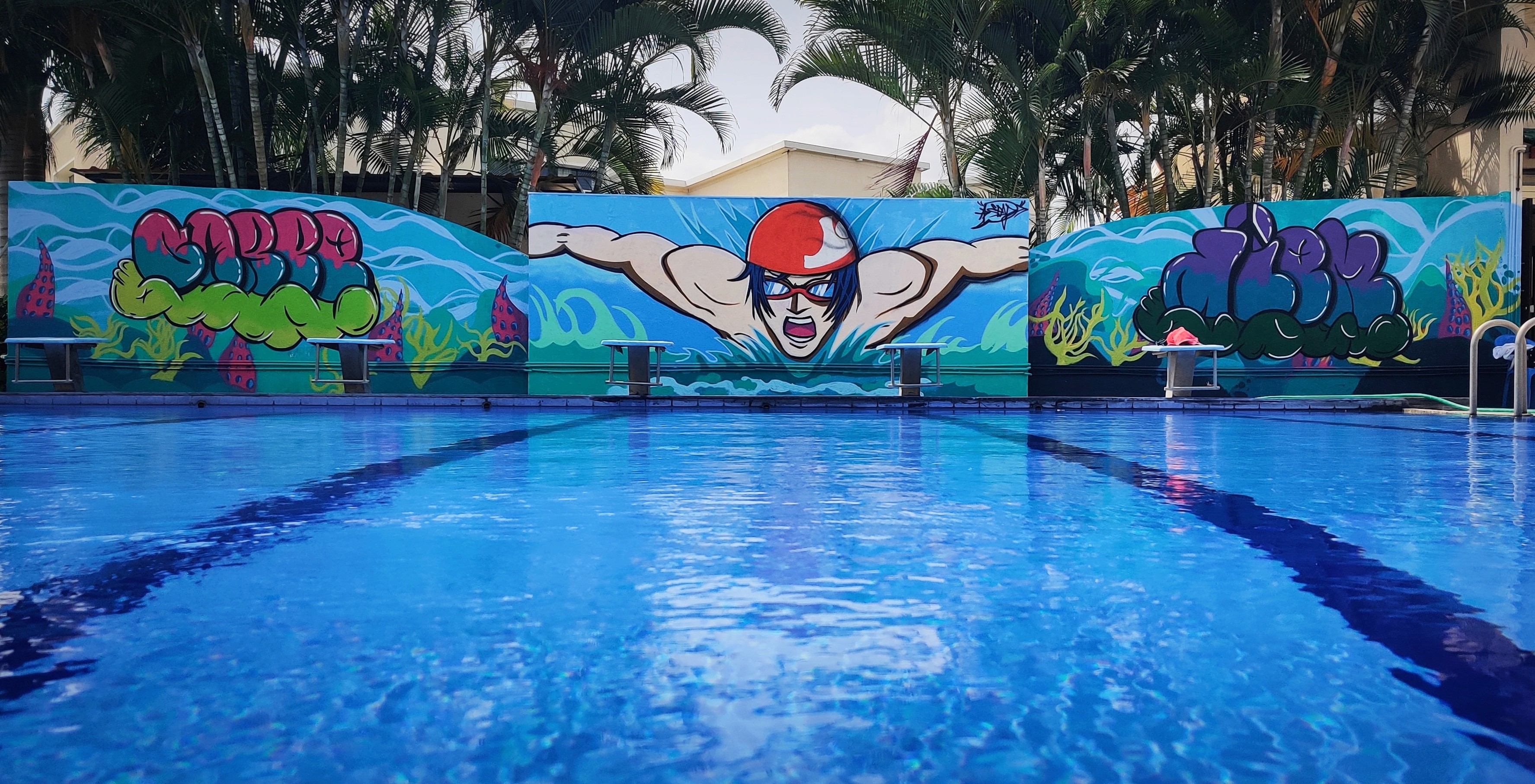 We synthesized school core values for the climbing wall while drawing inspiration from modern anime culture to energize the swimming pool arena.